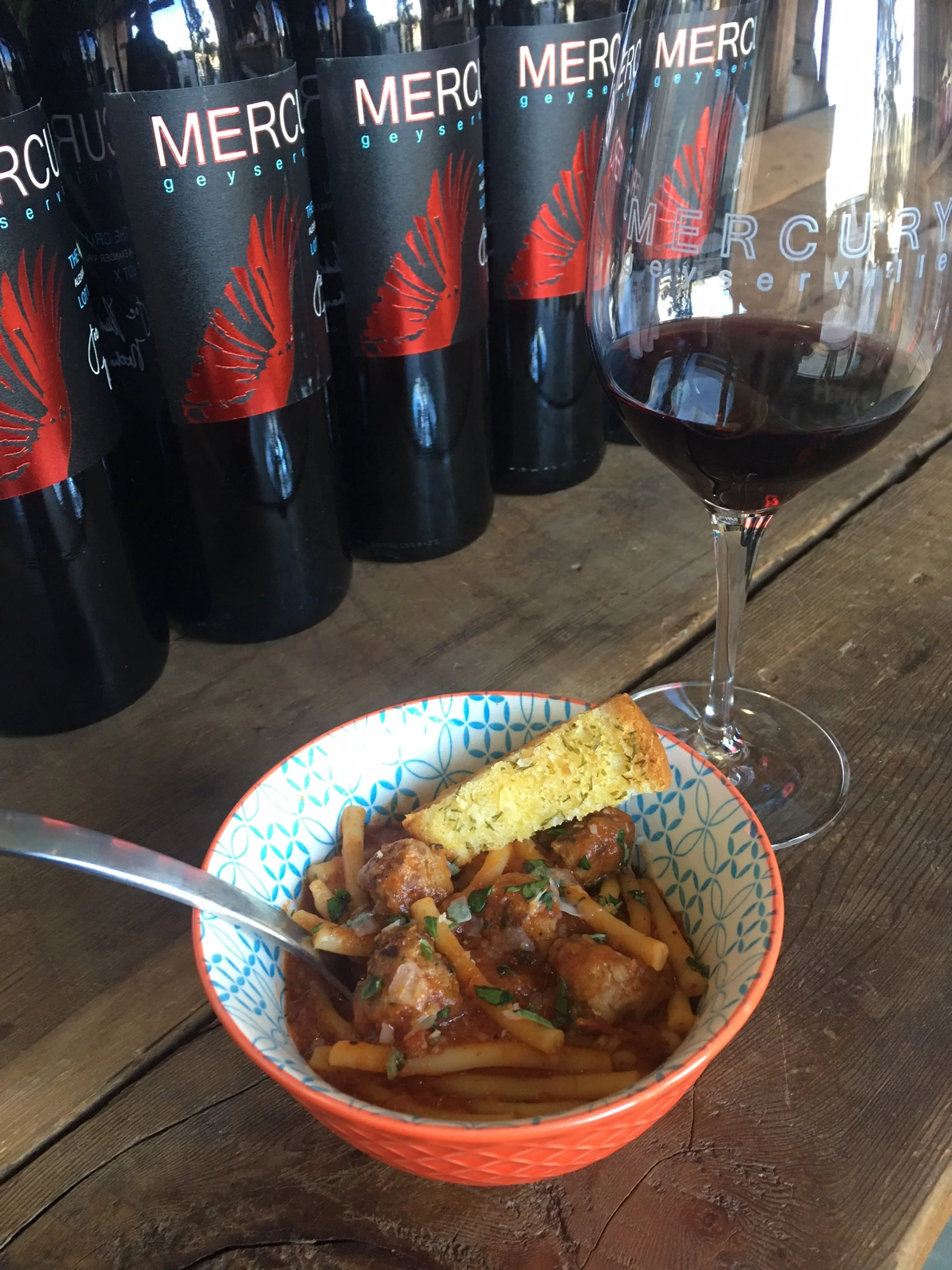 In the same skillet, sauté minced garlic and crushed red pepper flakes for a minute, then deglaze pan with the red wine and chicken stock. Add the Rao's marinara and 1/4 cup of water used to rinse the Rao's jar. Add garlic powder and onion powder. Let soup base simmer while you boil 1/2 bag of Bucatini broken in to 1 ½ inch pieces.